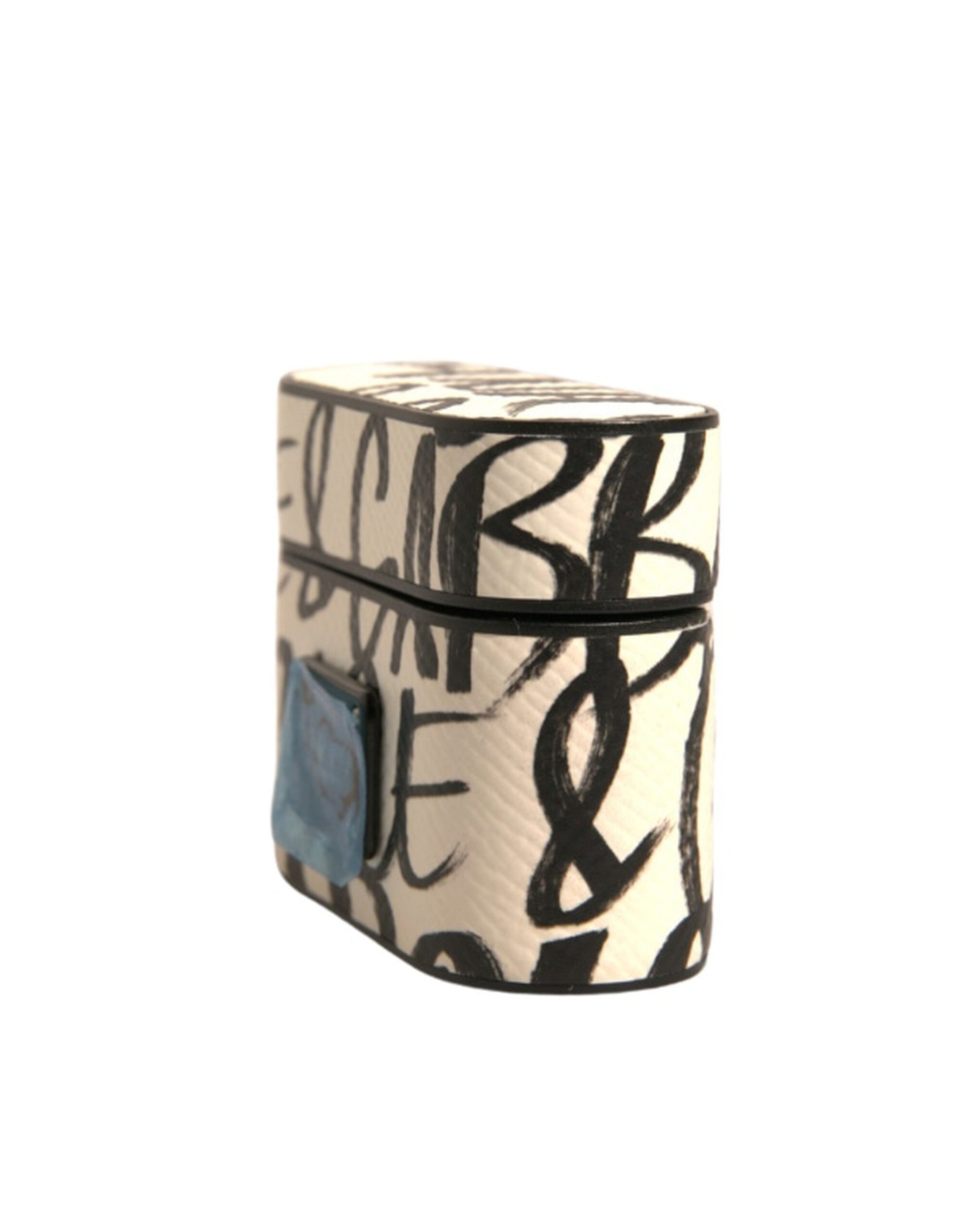 Dolce & Gabbana Black White Leather Scribble Embossed Logo Airpods Case