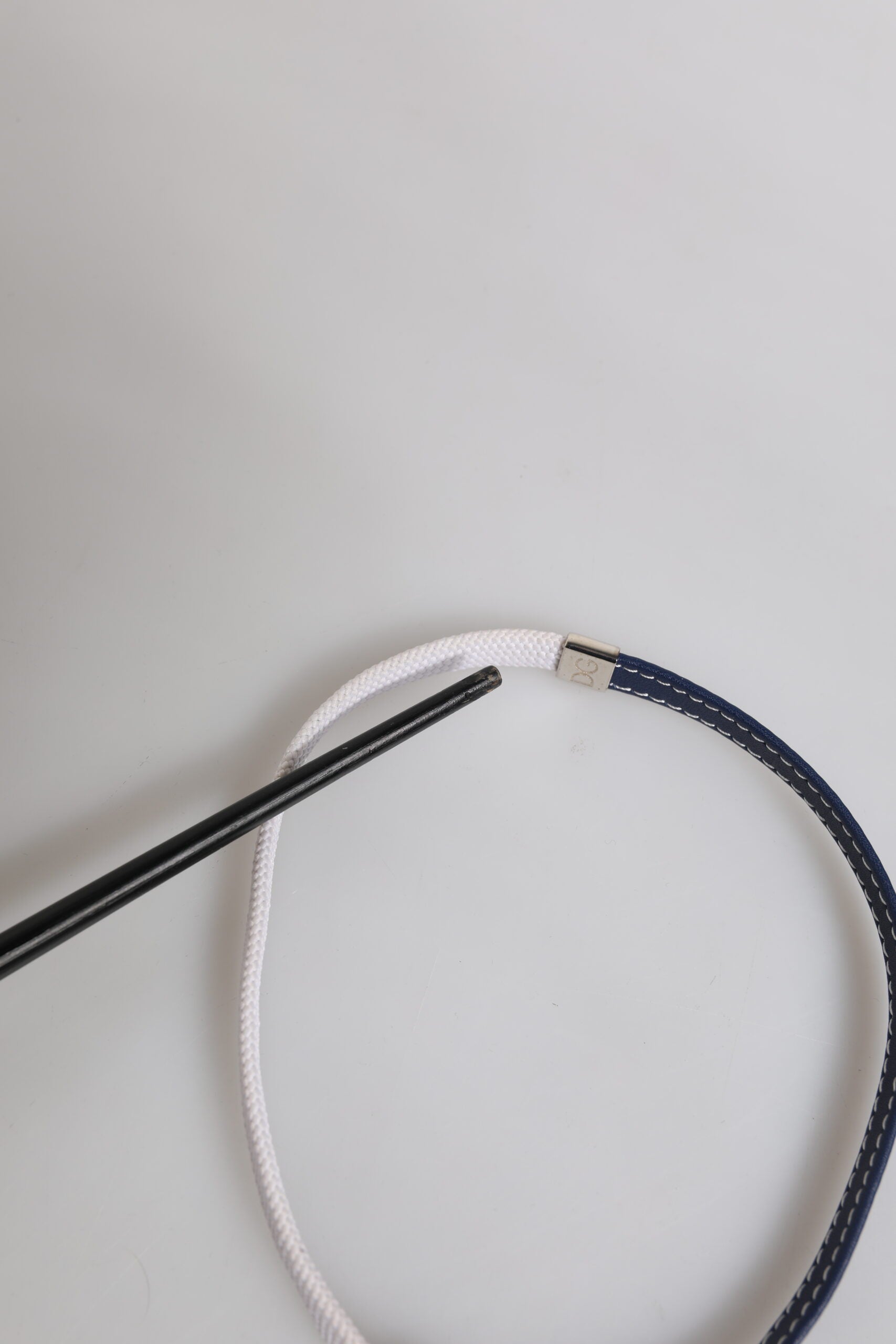 Dolce & Gabbana Blue White Leather Trimmed DG Engraved Silver Tone Clasp Bracelet