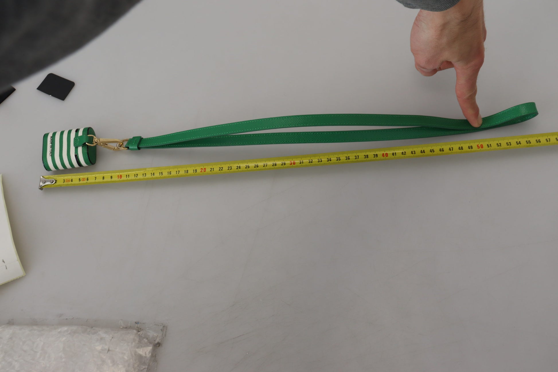 Dolce & Gabbana Green Leather Strap Gold Metal Logo Airpods Case